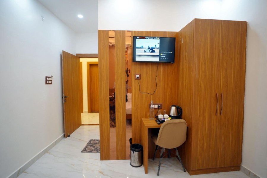 The Supe Deluxe at Hotel Shri Sai Palace Ayodhya is thoughtfully designed to accommodate families or small groups, offering ample space and modern comforts. This well-appointed room features air conditioning, multiple cozy beds, and tasteful interiors to ensure a relaxing stay for everyone. Amenities include a flat-screen TV, wardrobe, seating area, and a well-equipped attached bathroom with complimentary toiletries. Perfect for creating memorable moments, the Supe Deluxe provides a warm and inviting ambiance for a comfortable and enjoyable stay for all family members.